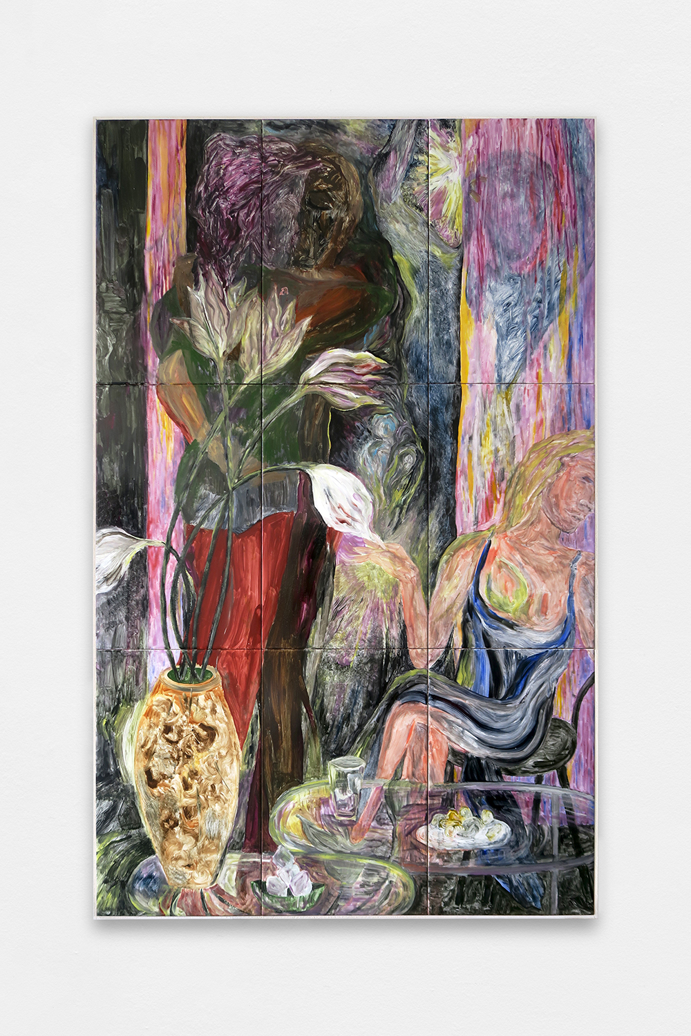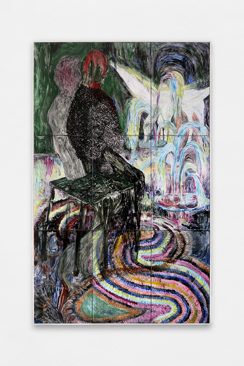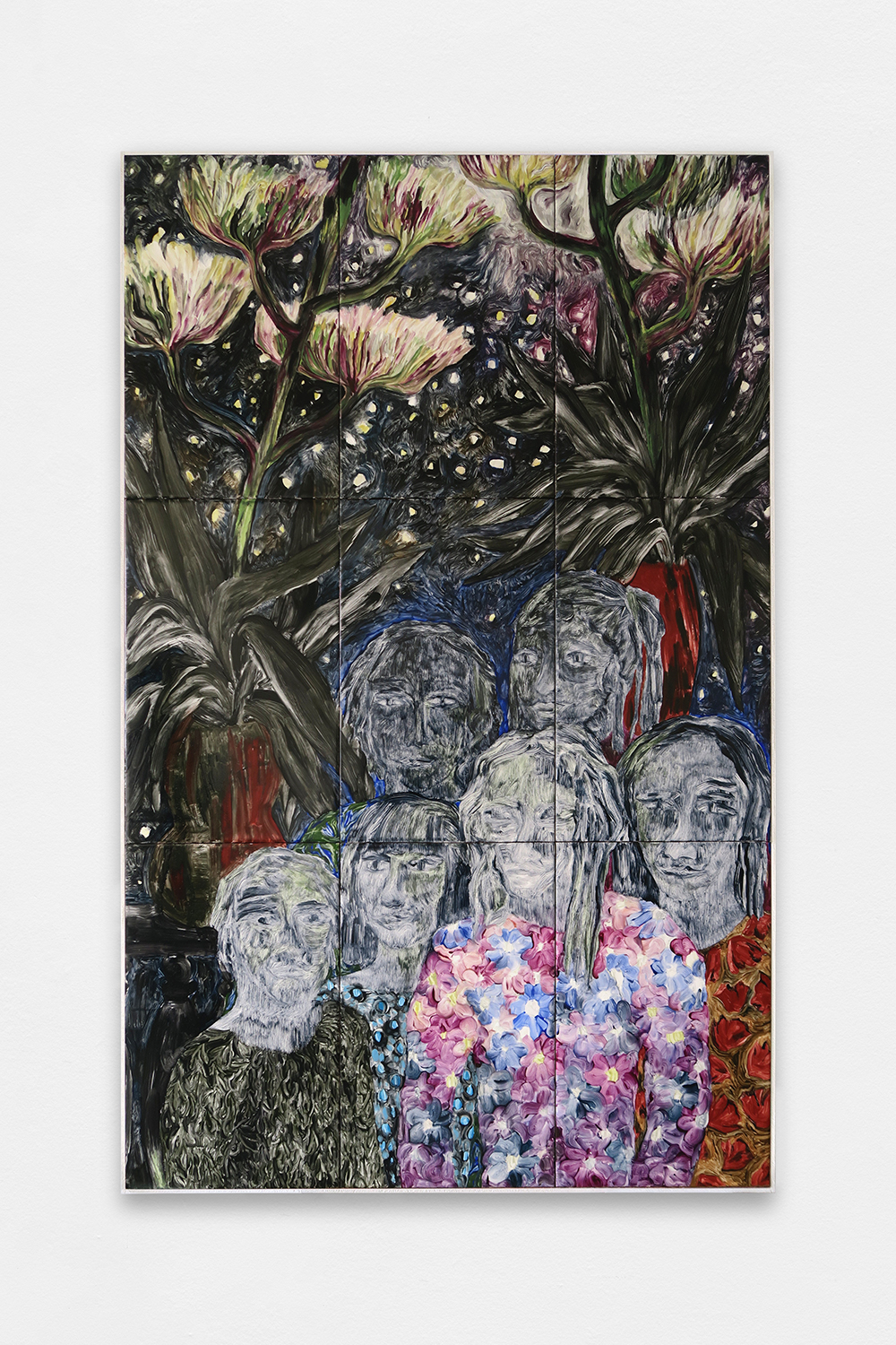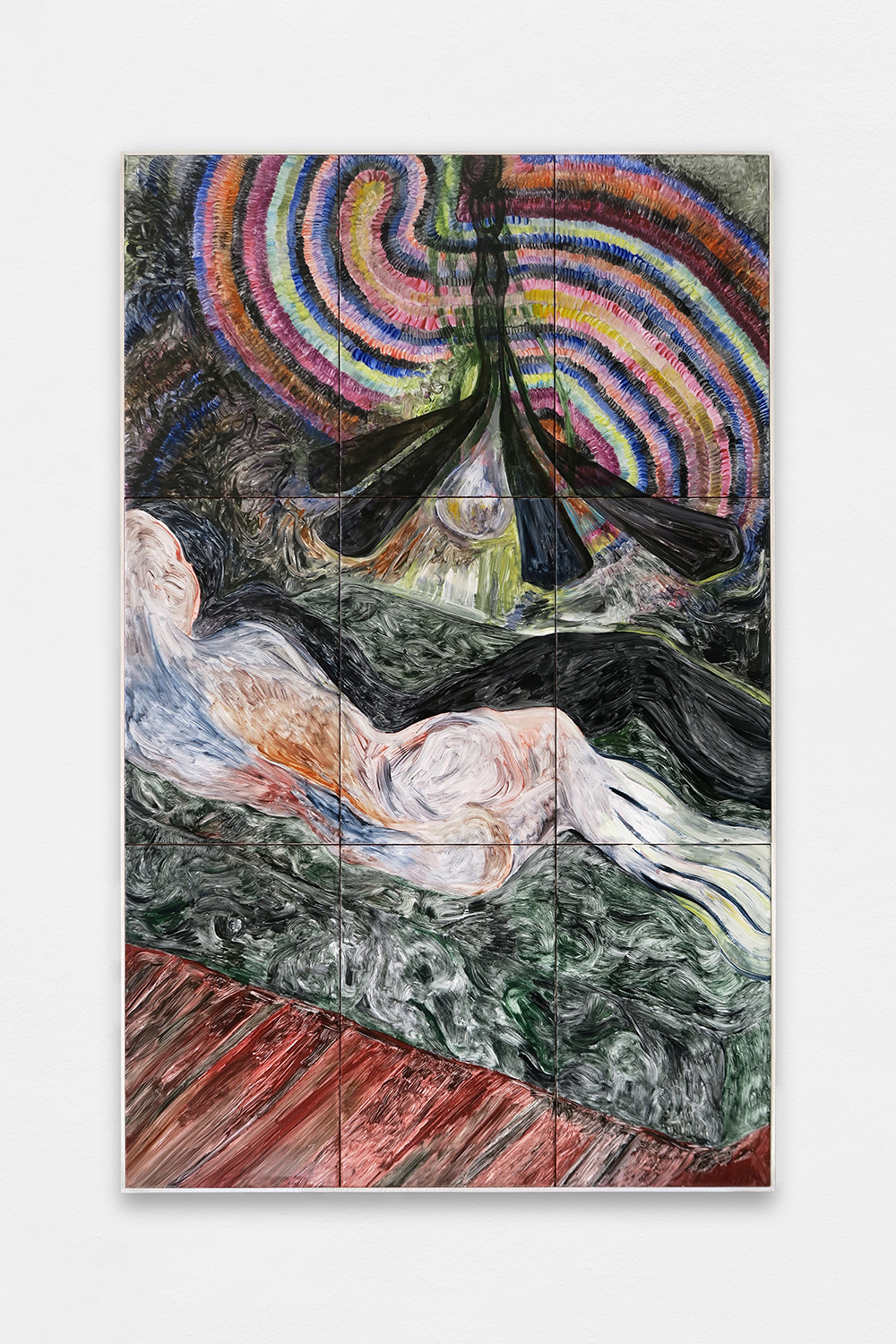 All Night Long, 2024, Painting on glazed earthenware, baked, mounted on plywood, artist frame, 120,8 × 75,6 cm