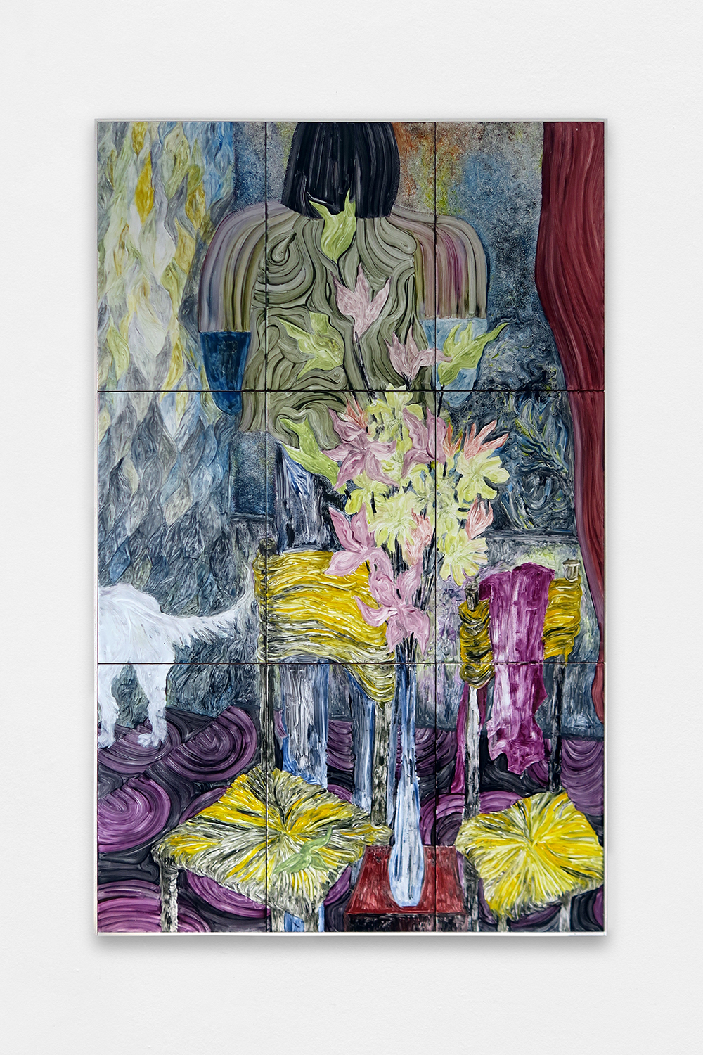 I’m So Into You, 2024, Painting on glazed earthenware, baked, mounted on plywood, artist frame, 120,8 × 75,6 cm