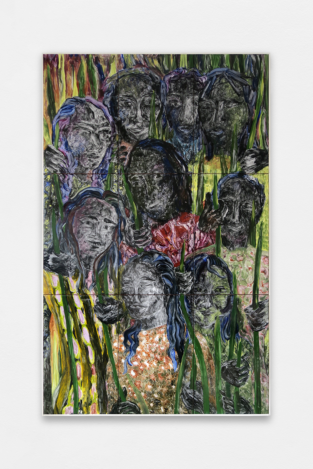 Young Nation, 2024, Painting on glazed earthenware, baked, mounted on plywood, artist frame, 120,8 × 75,6 cm