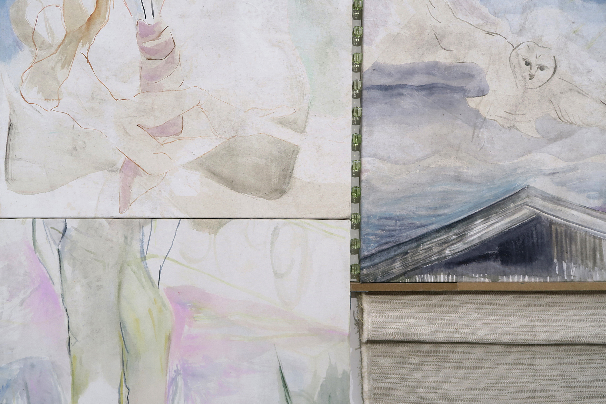 Puzzle, 2019 ; watercolour and gesso on canvas, artist frame in oak wood; 28,5 × 42,5 cm